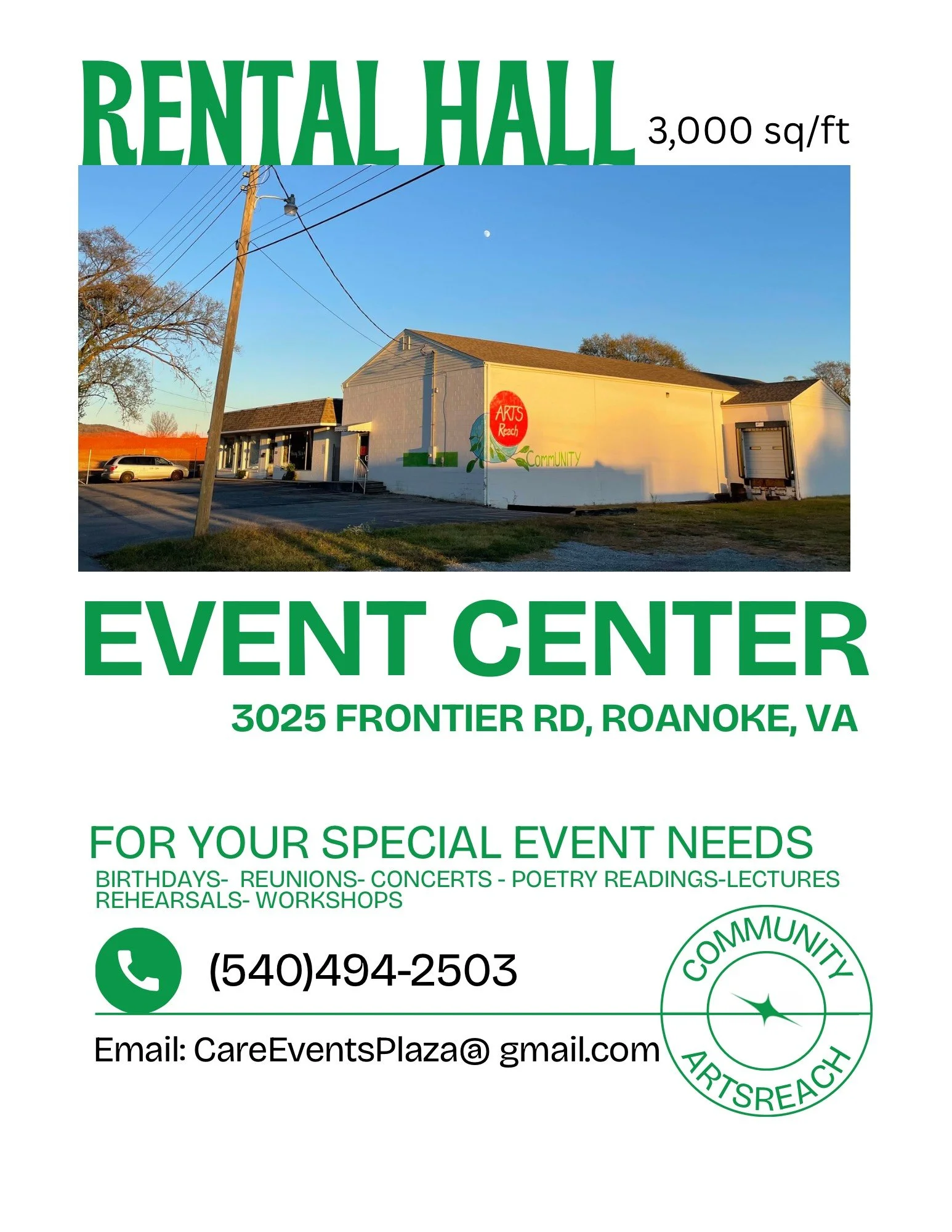 Looking for an affordable and versatile venue for your next event? Our Community Arts Reach Rental Hall is now open and available for bookings! Whether you're planning a wedding, family reunion, workshop, meeting, or special gathering, our space offers a welcoming and flexible setting to bring your vision to life.